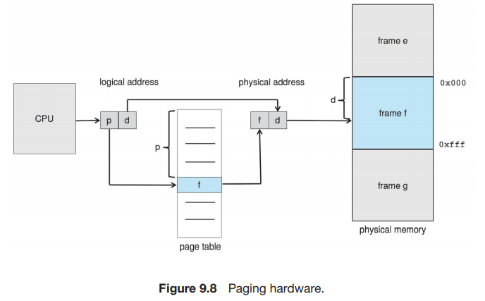 - 通过页表将 page number 转换为对应的 frame 的 base address